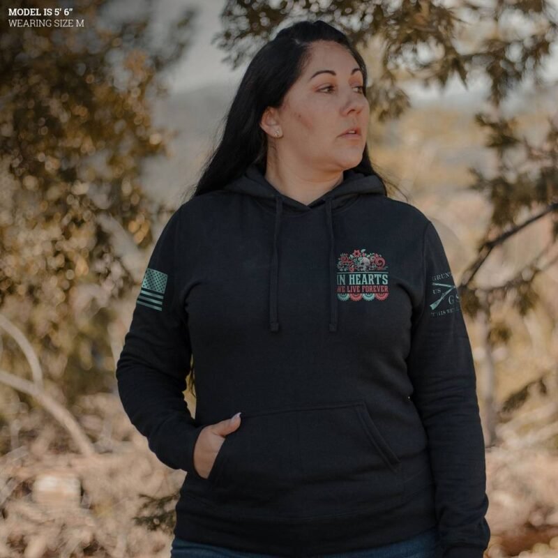 Women’s In Hearts We Live Forever Hoodie – Jet Black